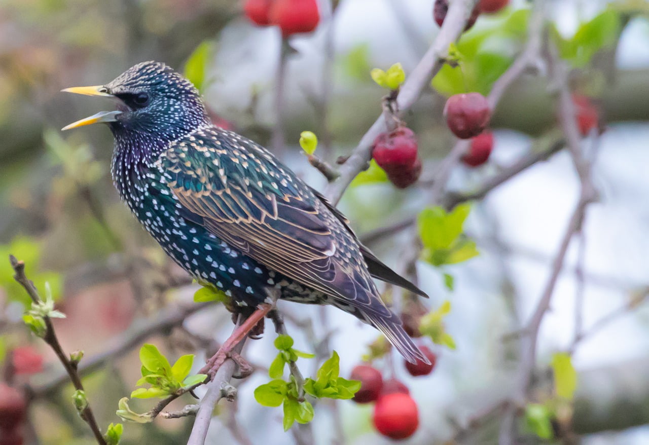 European Starlings are found in a variety of habitats, including urban and suburban areas, agricultural fields, and open woodlands. They are omnivorous and will eat insects, fruits, and seeds.
